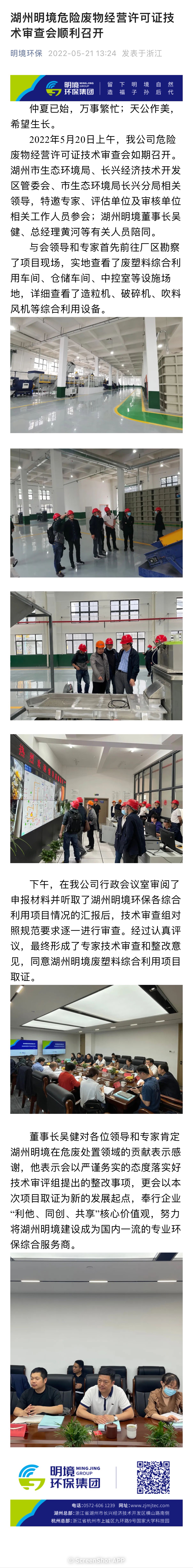 湖州明境危險廢物經營許可證 技術審查會順利召開