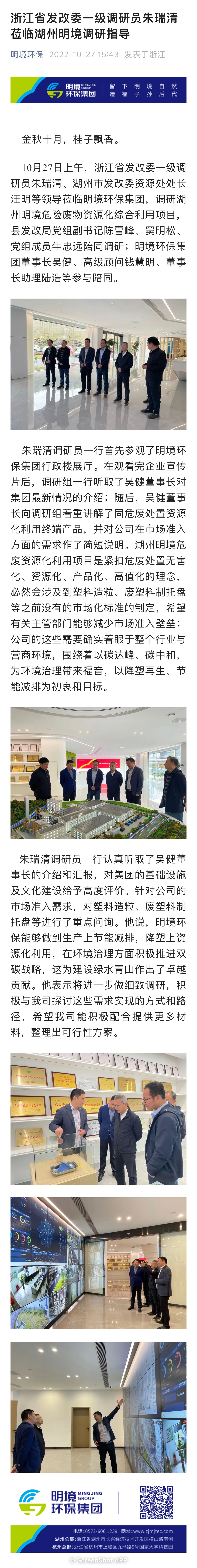 浙江省發改委一級調研員朱瑞清蒞臨 湖州明境調研指導