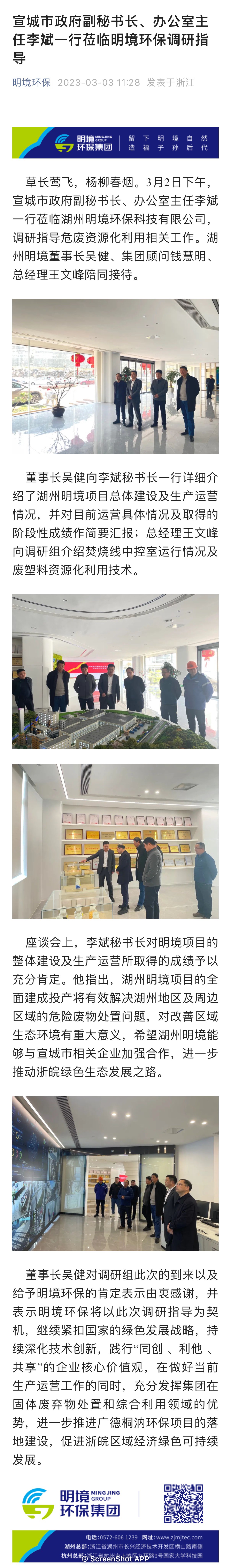 宣城市政府副秘書長(zhǎng)、辦公室主任李斌一行蒞臨明境環(huán)保調(diào)研指導(dǎo)
